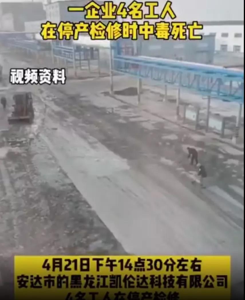 4月21日,黑龙江省安达市某公司4名工人在停产检修苄草丹生产车间制气釜时先后中毒,经抢救无效死亡,另6人在实施救援时出现中毒反应,经医治无生命危险。
